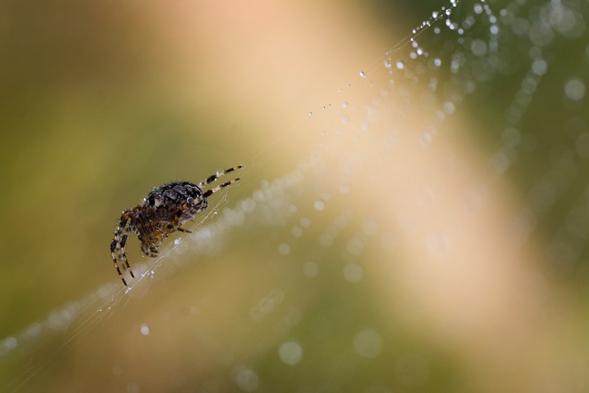 Spindeln är upplättad i kroppen – den var fotad i motljus, vilket gör den självklart mycket mörk utan upplättning?(vilket jag alltid gör med att duplicera mitt grundlager och använda screen i det). Därefter har jag lagt lager på lager i bakgrunden med mjukt ljus alt multiplicering för att få mer ”stuns” i bilden. Det gör jag nästan alltid på ala bilder för att få dom poppa till.