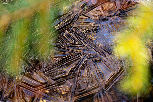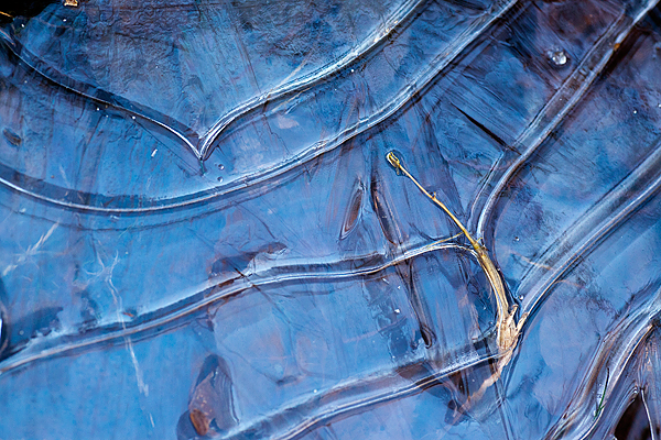 Jag faller pladask (kanske en isfläck 😉 ) för första bilden gillar den ”silvriga” tonen och färgen på isen, spännande mönster och textur i isen, de infrusna löven och gräset fullbordar denna sköna abstrakta bild. Som len honung för mina ögon, njutbart…