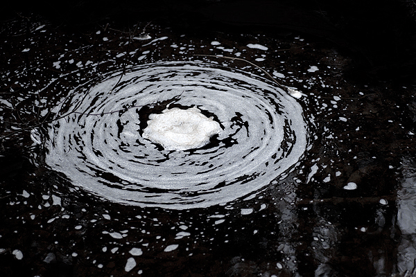 Aldeles intill min bil slängde jag en blick ner mot forsen och där såg jag en vit massa som snurrade runt runt, som en vintergata i miniatyr: