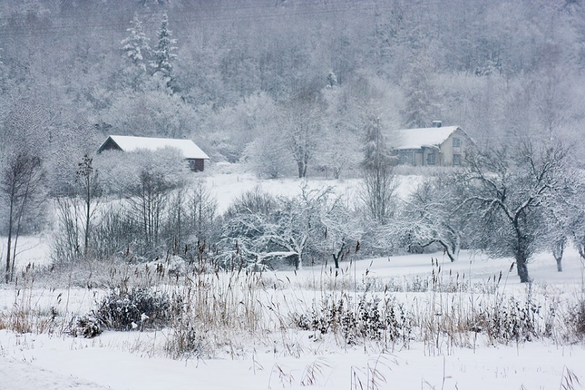 Så jag kastade mig ut, på med stövlar och klampade iväg med stora älgkliv i full galopp bort till sjön. Upp över meterdjupa snövallar igenom skogen och fram till sjön med hisnande vackra blåfärgade skuggor som målade den vita sjön med sitt grafiska mönster. Jag drog upp kameran med andan i halsen och dunkande hjärta för att ta ett kort……… bara för att inse att det inte satt något minneskort i kameran.Dööööh…….Gahh.. idiot!