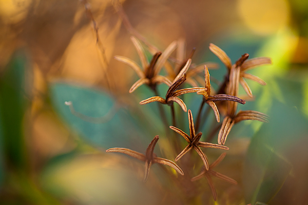 Bakom kameran och i min hjärna var det dock dramatik – där ett synligt ”ont öga# syntes i bakgrunden på bilden nedan. Det bevakar sina romantiska blommor och ser strängt på mig som kikar åt motsatt håll – ”nåde dig om du rör dom”! (Märk hur knepigt utdragen bilden ser ut? Jag fotograferar nämligen rakt igenom en pinne och det förvrängde bilden kraftigt)